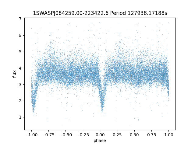 | 1SWASPJ084259.00-223422.6 | 13.60 | 127938.17188 ~ |