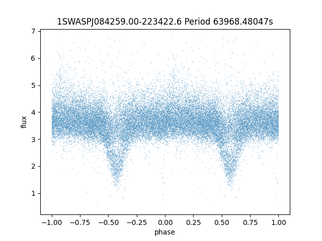 | 1SWASPJ084259.00-223422.6 | 13.60 | 63968.48047 ~ |