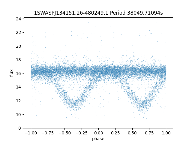 | 1SWASPJ134151.26-480249.1 | 12.01 | 38049.71094 ~ |