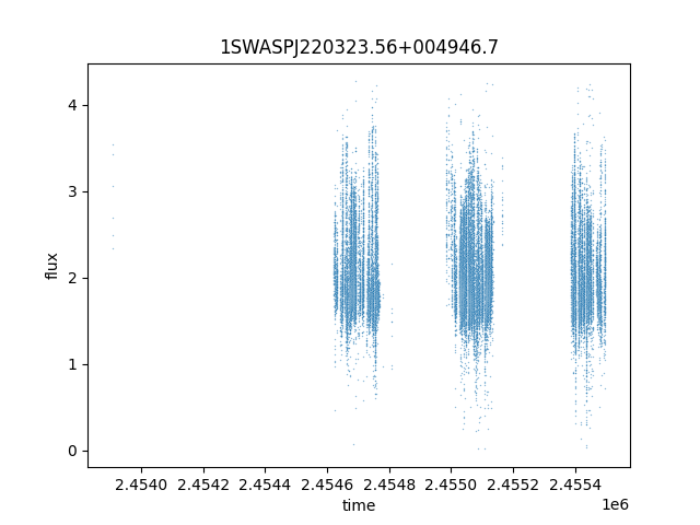 1SWASPJ220323.56+004946.7