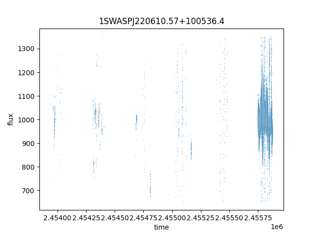 1SWASPJ220610.57+100536.4