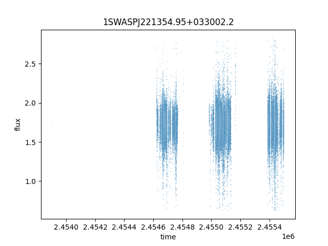 1SWASPJ221354.95+033002.2