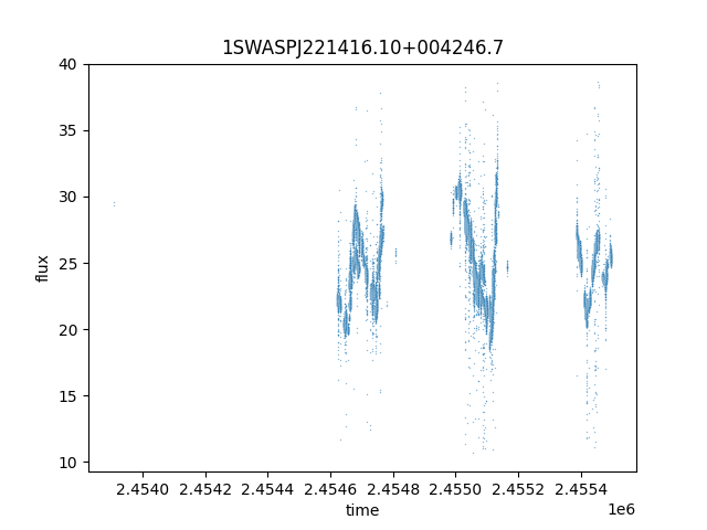 1SWASPJ221416.10+004246.7