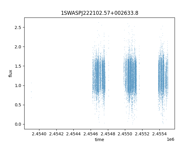 1SWASPJ222102.57+002633.8