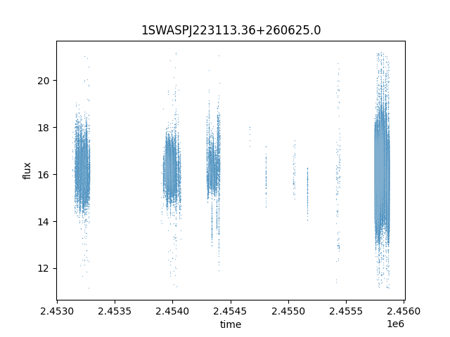 1SWASPJ223113.36+260625.0